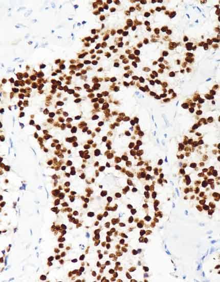 卵巢浆液性癌,Pax-2染色,细胞核阳性
