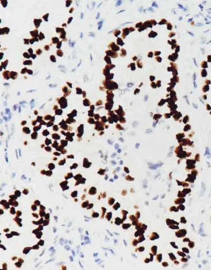 肺腺癌,TTF-1染色,细胞核阳性。