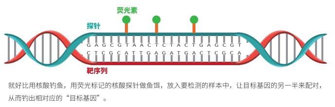 荧光原位杂交(Fluorescence in situ hybridization,FISH)是 20 世纪 80 年代末逐渐发展起来的分子遗传学诊断技术。是依据碱基互补原理,应用荧光素直接或间接标记的核酸探针,在组织切片、细胞涂片、染色体铺片上检测间期细胞核染色质数量及结构变化,进行定性和相对定量的分析检测技术。